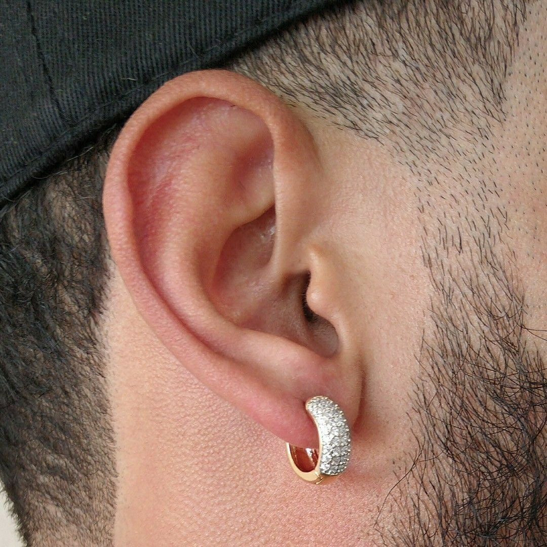 Chic and chunky, these wide hoop earrings tightly hug the earlobe and are entirely paved with brilliant white diamonds for maximum coverage and sparkle.