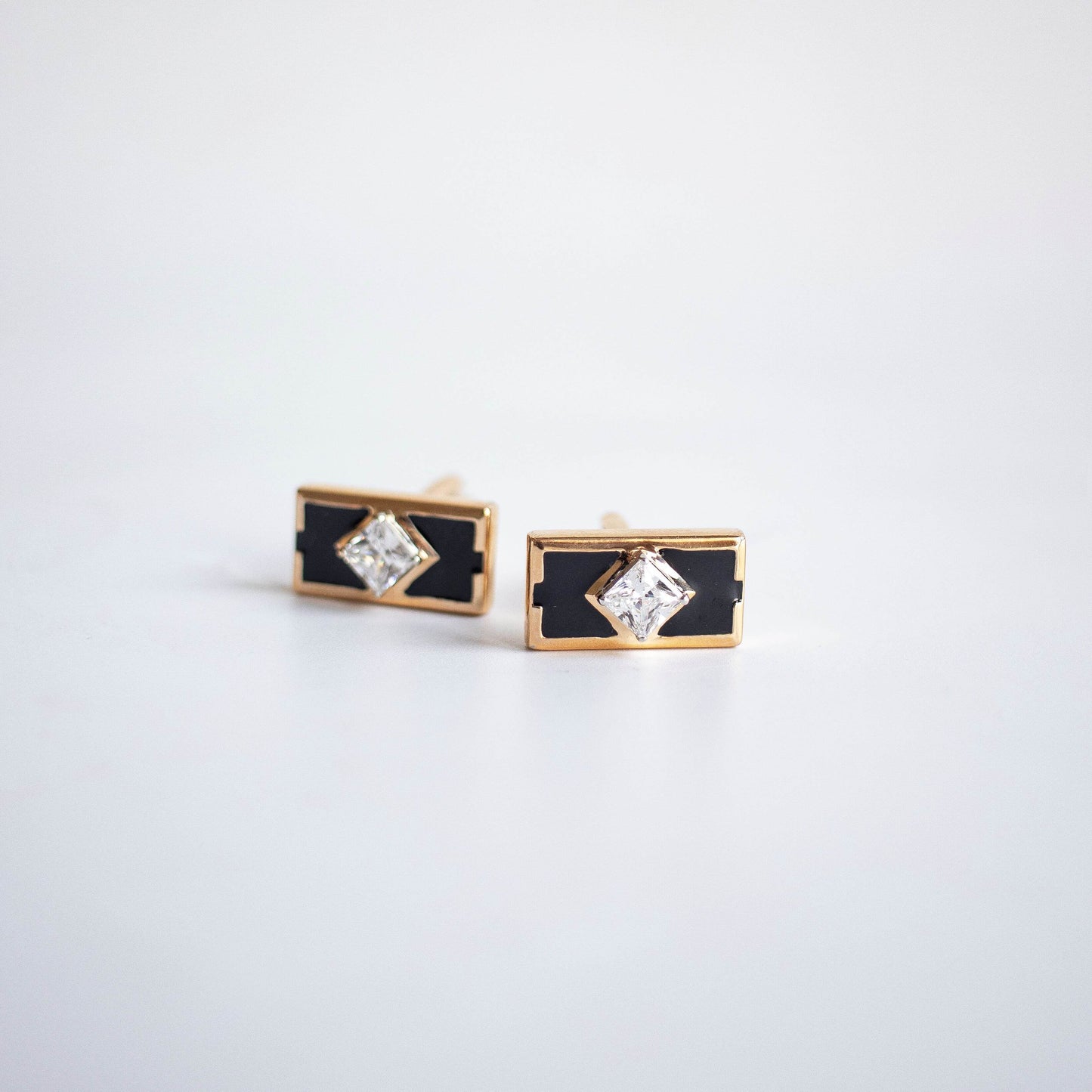 Polished sophistication meets a bold diamond frame design. A perfect finishing touch for a modern gentleman.