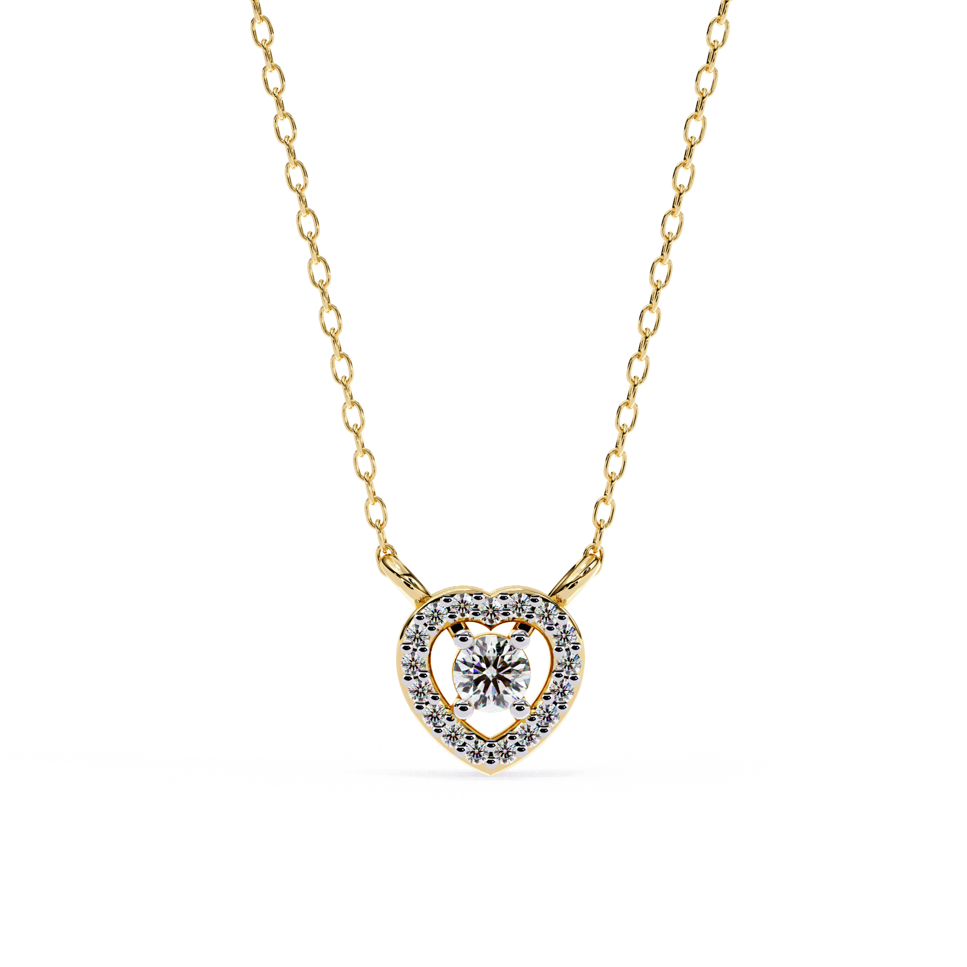 Brilliant central diamond continuously dances and sparkles at the center of a radiant, heart-shaped halo, symbolizing a love that's truly alive.