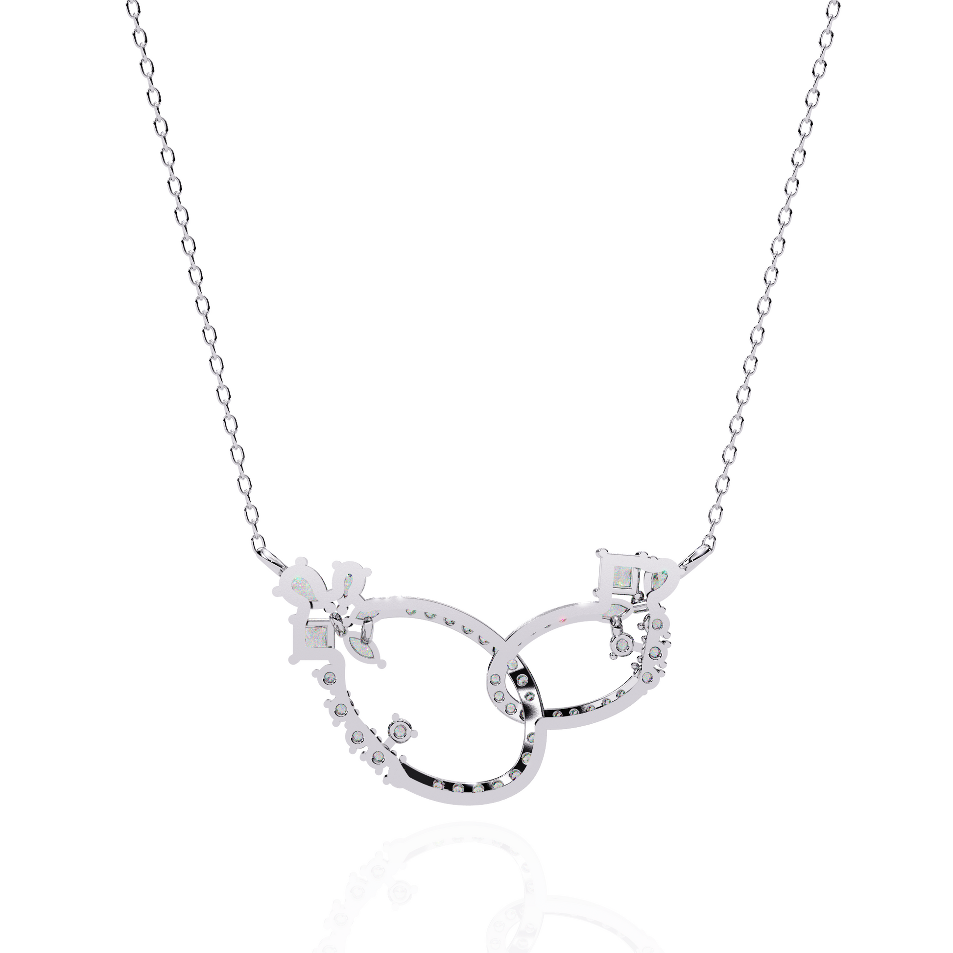 Intricate necklace featuring two interlocking pavé loops, accented with sparkling clusters of mixed-cut diamonds.