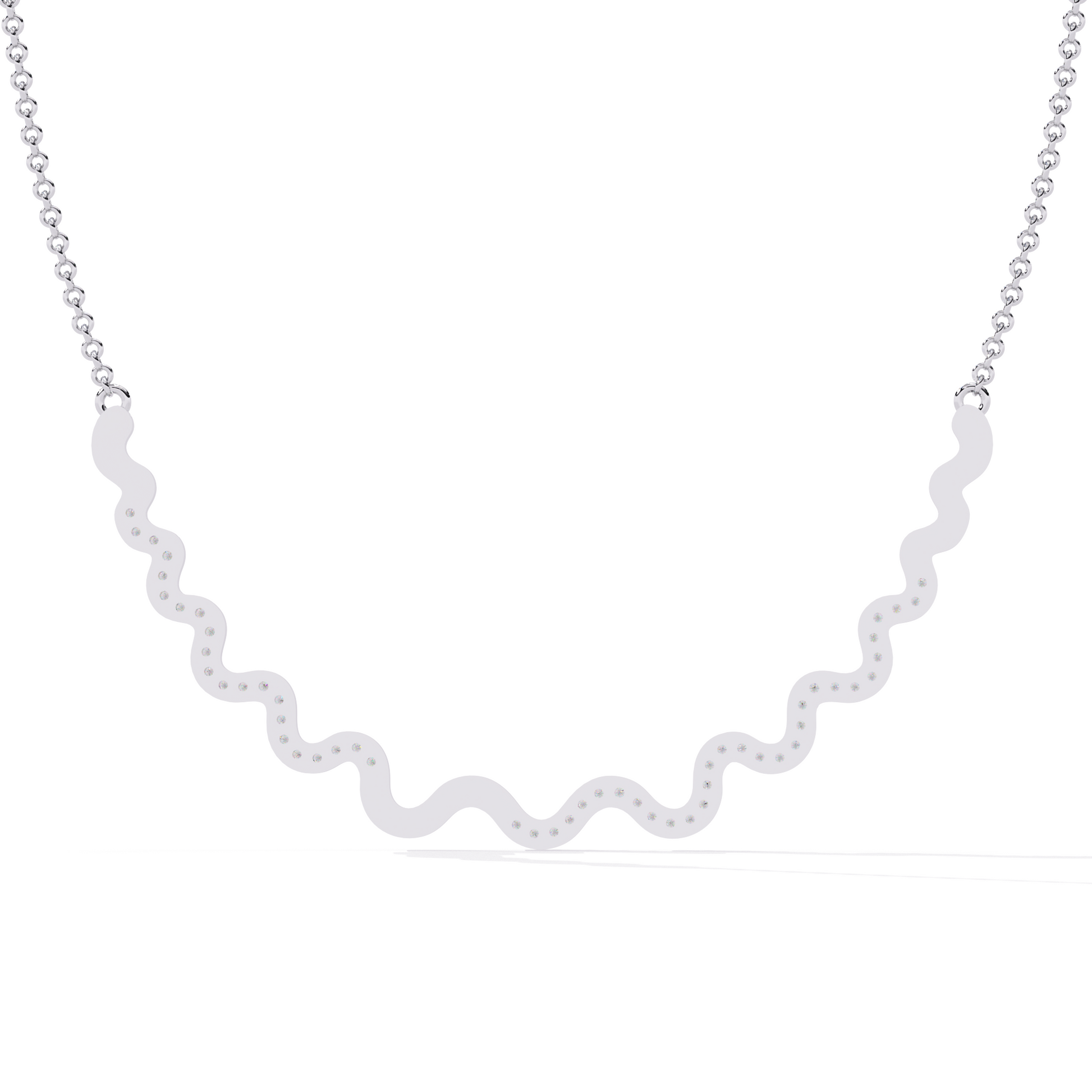 Delicate necklace featuring a flowing, wavy bar adorned with alternating sections of pavé diamonds and polished metal.