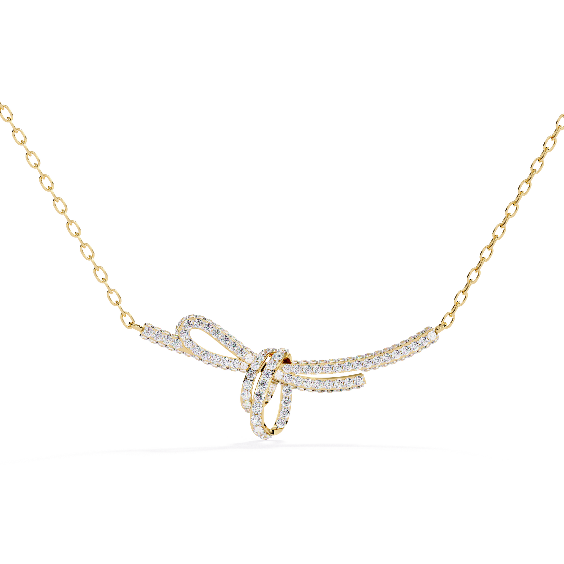 Delicate yellow gold necklace featuring a sparkling, pavé-set knot design.