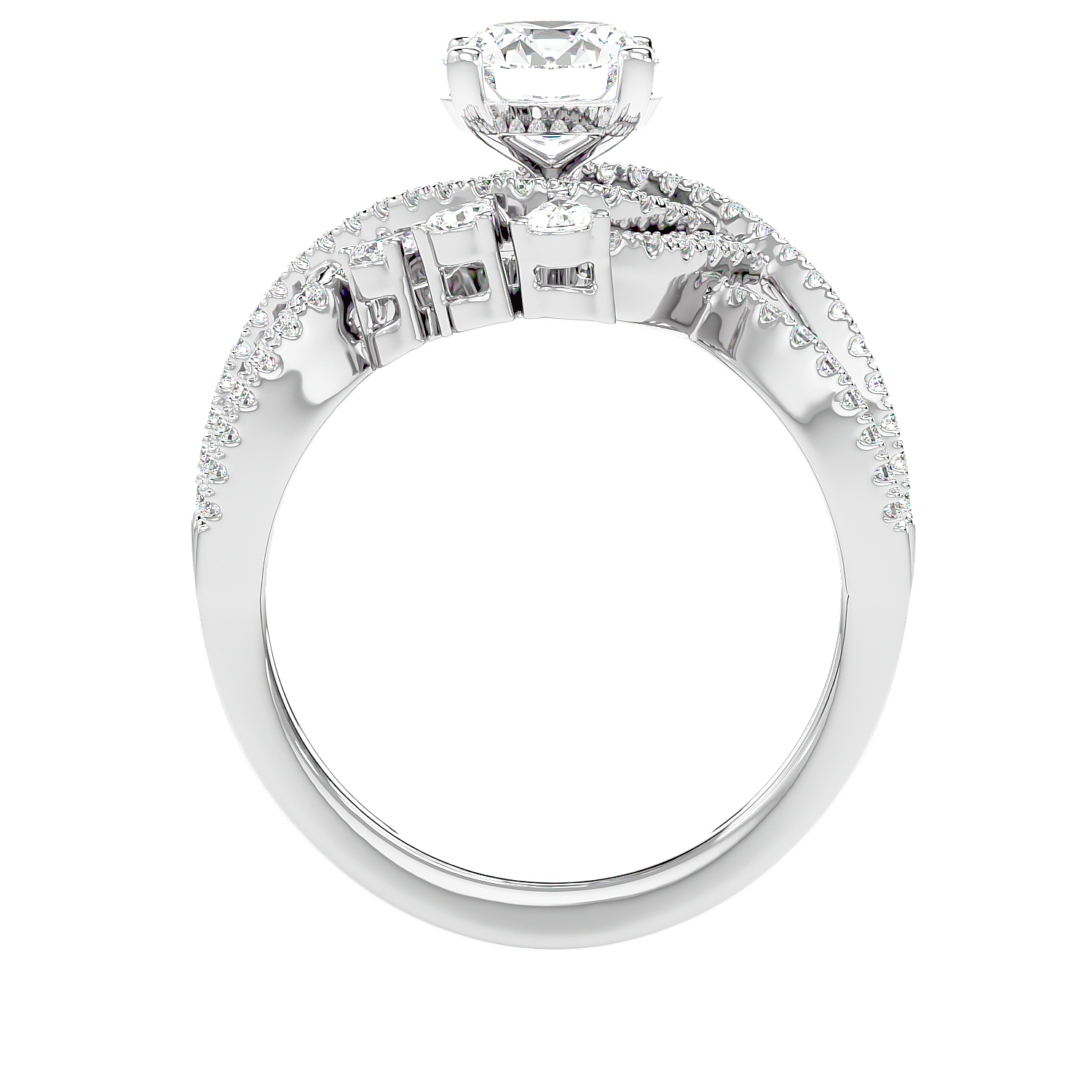 Breathtakingly grand ring, featuring a central diamond bloom set within a royal tapestry of intricately woven, sparkling bands.