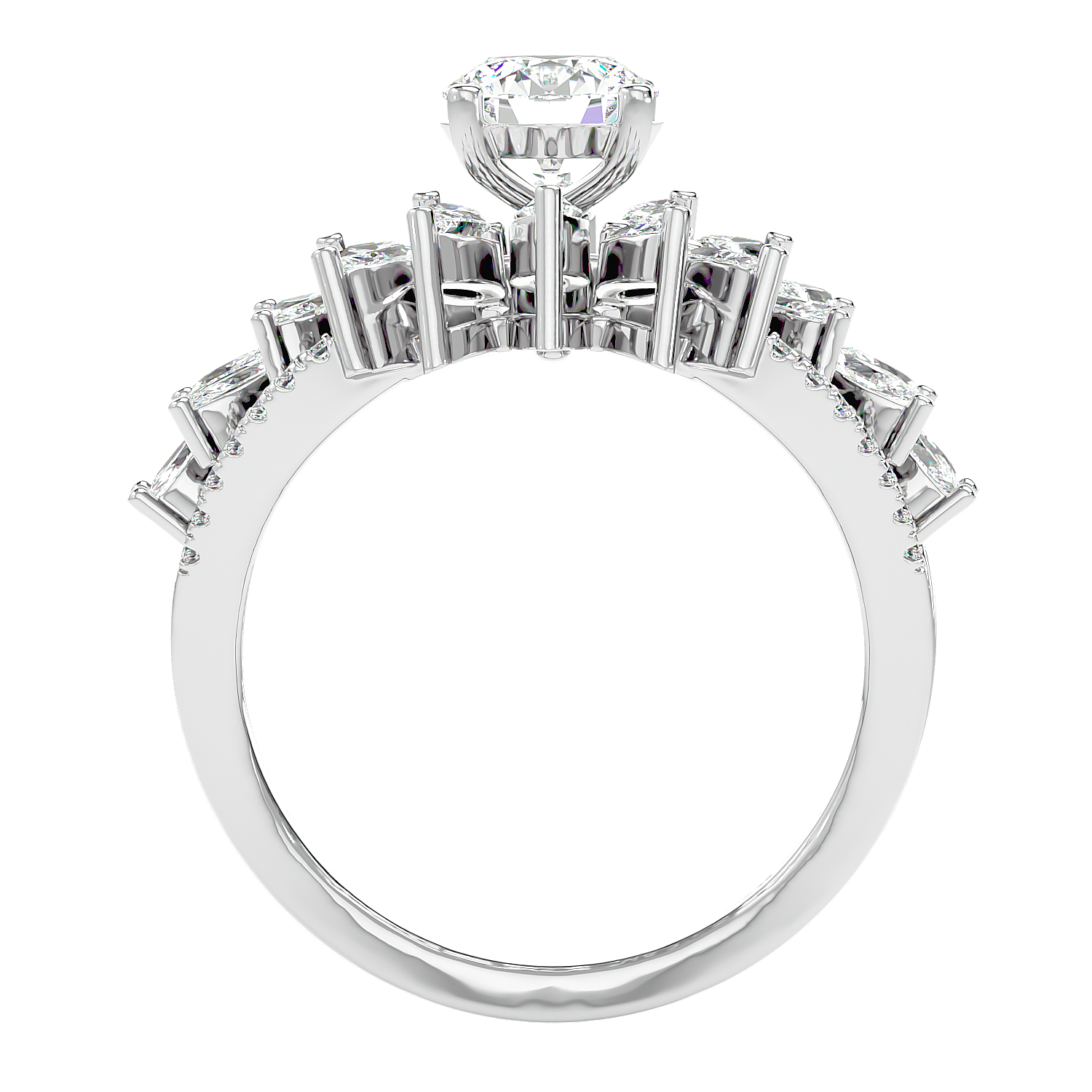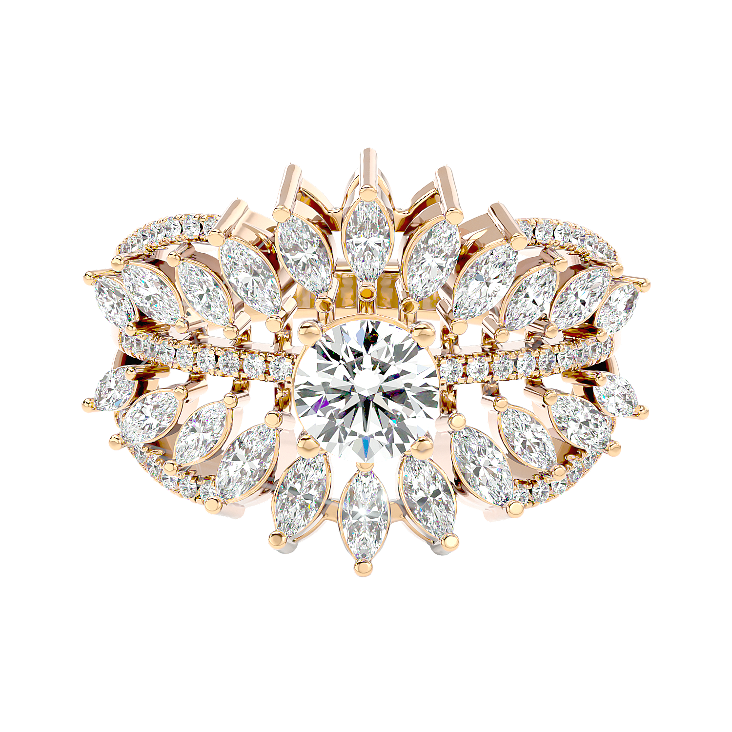 Truly magnificent ring, designed as a majestic diamond lotus, with a central brilliant diamond enshrined within layers of sparkling marquise-cut petals.