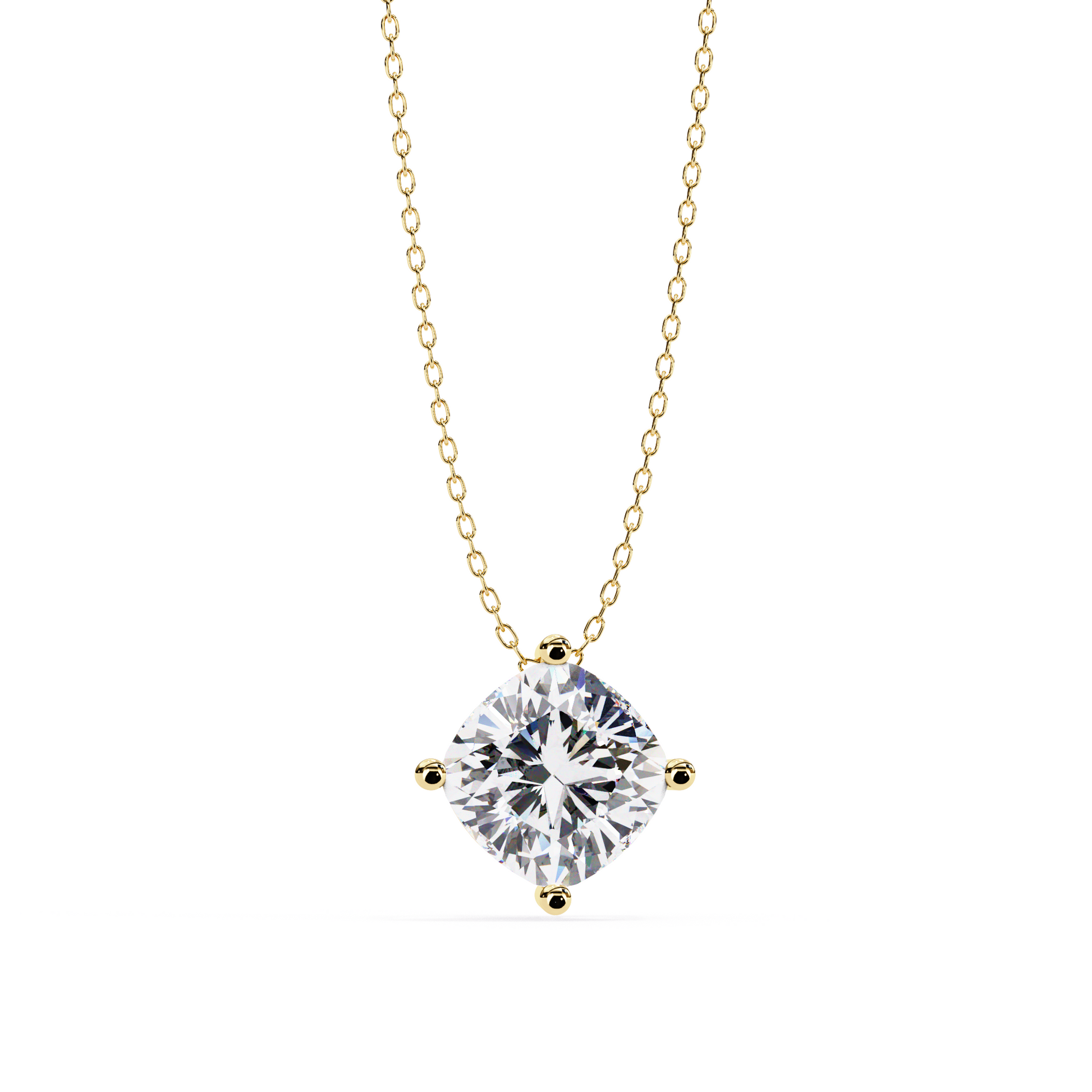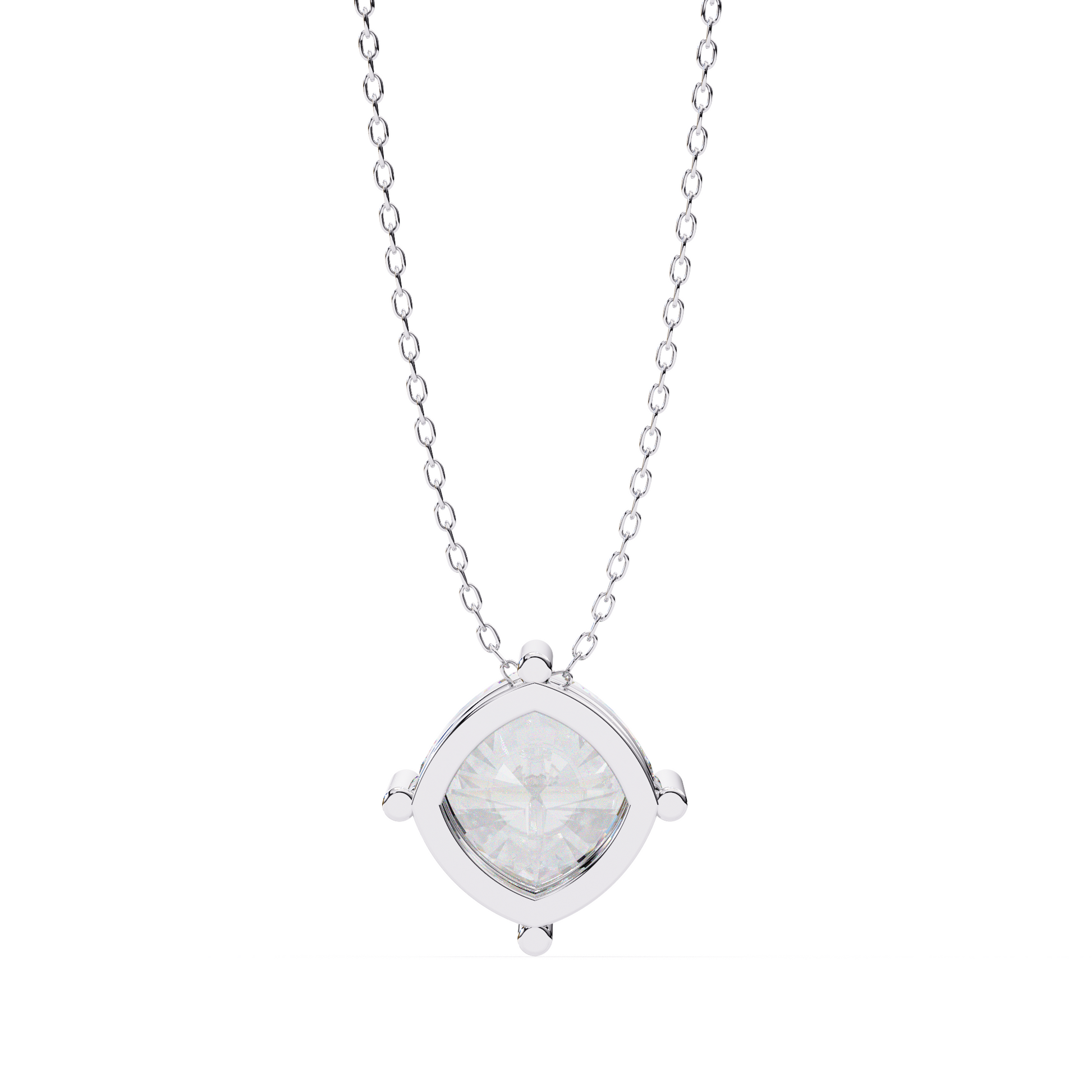 Solitaire pendant gives a classic cushion-cut diamond a contemporary edge by setting it in a dynamic, kite-like orientation.